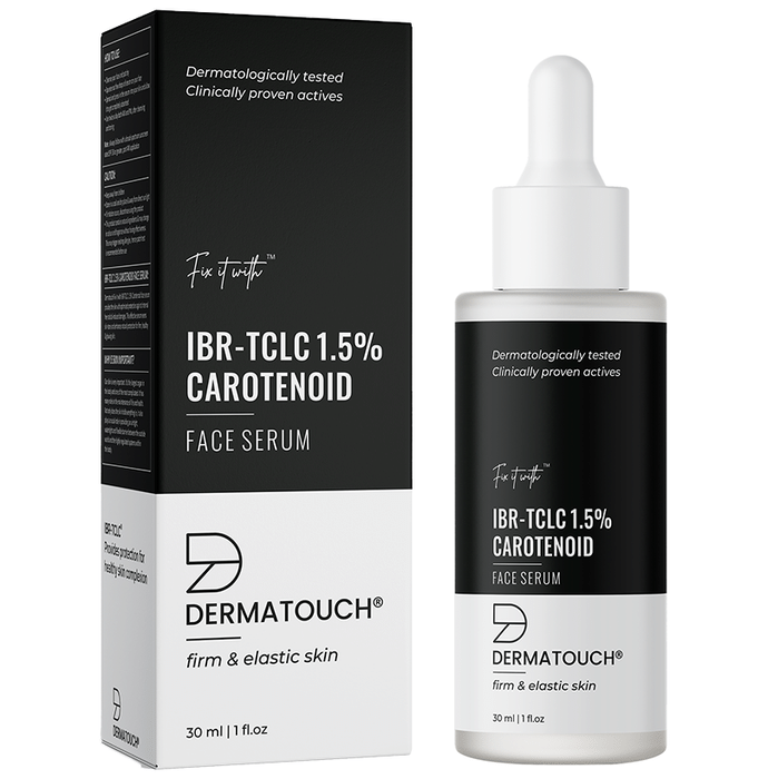 Dermatouch IBR-TCLC 1.5% Carotenoid Face Serum provides the skin with optimised protection against the internal free-radical-induced damages. This effective serum evens skin-tone and enhances natural protection for firm, healthy and glowing skin. The ingredient in the serum helps to leave the skin smooth and more elastic. | Key Ingredients: IBR-TCLC | Key Benefits: IBR-TCLC is a multifunctional ingredient that acts as an anti-inflammatory agent and melanin inhibitor It helps to brighten the skin and complexion while protecting it against free-radicals Helps to improve cellular anti-oxidative and anti-inflammatory capacity The serum helps to lighten skin tone and decrease redness and prevent collagen deterioration It enhances natural protection and melanin inhibition for a healthy, glowing skin This serum also helps to restore skin elasticity and reduce visibility of pores | Directions for use: Cleanse face and pat dry Squeeze out few drops of serum on your face Apply the serum all over your face and neck with your fingertips Dab and press in into your skin to allow the serum to get absorbed into the skin Use twice a day both AM and PM, after cleansing and toning Note: Always follow with a broad-spectrum sunscreen rated SPF 30 or above, post AM application | Safety Information: For external use only Keep out of the reach of children Store in a cool and dry place Read the label carefully before use