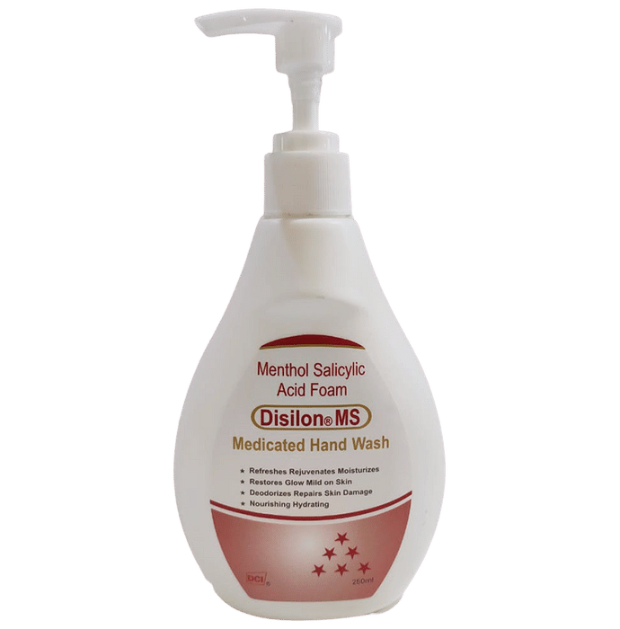 Disilon MS 250ml (Medicated Hand Wash) washes away impurities, detoxifies, kills virus, bacteria and balances the skin, by thoroughly cleansing and moisturising simultaneously. It is ideal for daily use at home, work, hospitals and clinics. Using it every day protects hands from germs and helps keep them hygienically clean and refreshed. | Key Ingredients: Menthol IP: 0.1% Salicylic Acid IP: 0.1% Colloidal Oatmeal in foam base- q.s. | Key Benefits: Salicylic acid is a skin exfoliant due to its keratolytic activity This combines with anti-bacterial and anti-fungal activities makes it ideal for treatment and prevention of bacteria and germs It helps in endogenous hydration Menthol prevents skin irritation by acting as a cooling agent It is a pH neutral formulation and therefore does not affect the natural moisturizing balance of the skin | Directions For Use: Use as directed. | Safety Information: Read the label carefully before use Keep out of reach of the children Store in a cool dry place
