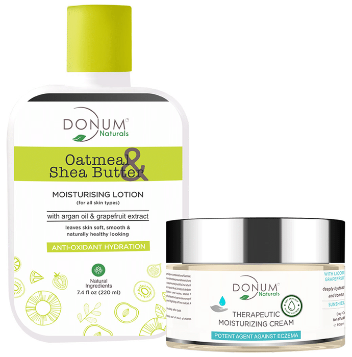 Donum Naturals Combo Pack of Oatmeal & Shea Butter Moisturising Lotion and Therapeutic Moisturizing Cream Donum Naturals Combo Pack of Oatmeal Shea Butter Lotion and Therapeutic Cream is a pack of two natural and nourishing set of lotion and therapeutic cream.It is a chemical free relaxing and healthy blend of natural ingredients. It moisturizes your skin and improves your skin tone.