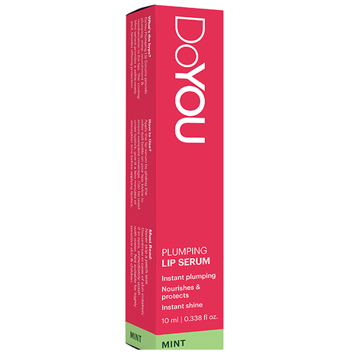 DoYou Plumping Lip Serum - Mint soothes, nourishes and moistures the lips. The pollen fractions and soybean, olive and wheat germ oil hydrates chapped lips, sunflower oil helps to heal dry and sensitive lips. Pomegranate flowers and jojoba oil complex firms and plumps lips naturally and the peppermint oil has a cooling effect on the lips. | Key Ingredients: Oleic/Linoleic/Linolenic Polyglycerides Helianthus Annuus (Sunflower) Seed Oil Hydrogenated Ethylhexyl Olivate Hydrogenated Olive Oil Unsaponifiables Simmondsia Chinensis Seed Oil Punica Granatum Flower Extract Polyglyceryl-3 Diisostearate Green Leaf Extract Pollen Extract Glycine Soja (Soybean) Oil Unsaponifiables Olea Europaea (Olive) Oil Unsaponifiables Triticum Vulgare (Wheat) Germ Unsaponifiables [Polyenes Rich Unsaponifiable Fractions] Glyceryl Caprylate Glyceryl Undecylenate Mentha Piperita (Peppermint) Oil Cinnamomum Zeylanicum Bark Oil Vitamin E Sodium Saccharin Ricinus Communis (Castor) Seed Oil Tocopherol Carthamus Tinctorius Seed Oil Spilanthes Acmella Flower/Leaf/Stem Extract Astragalus Membranaceus Root Extract Ubiquinone | Key | Benefits: This formula instantly improves blood circulation to the lips, followed by a cool, tingling sensation leading to a luscious, high-glam pout Sunflower oil turns up the moisturization, vitamin E strengthens the protective barrier and peppermint oil wards away any possible lip infection It is lightweight, non-sticky and fits right in your routine and it can be worn under your lipstick or over it or just swipe for sheer glossiness | Directions For Use: Glide the roller twice over your lips to ensure complete coverage Wear it over or under your lipstick or just stick to a sheer, glossy pout Double up for best results- leave it on overnight and wake up to softer lips | Safety Information: Read the label carefully before use Keep out of reach of the children Store in a cool dry place