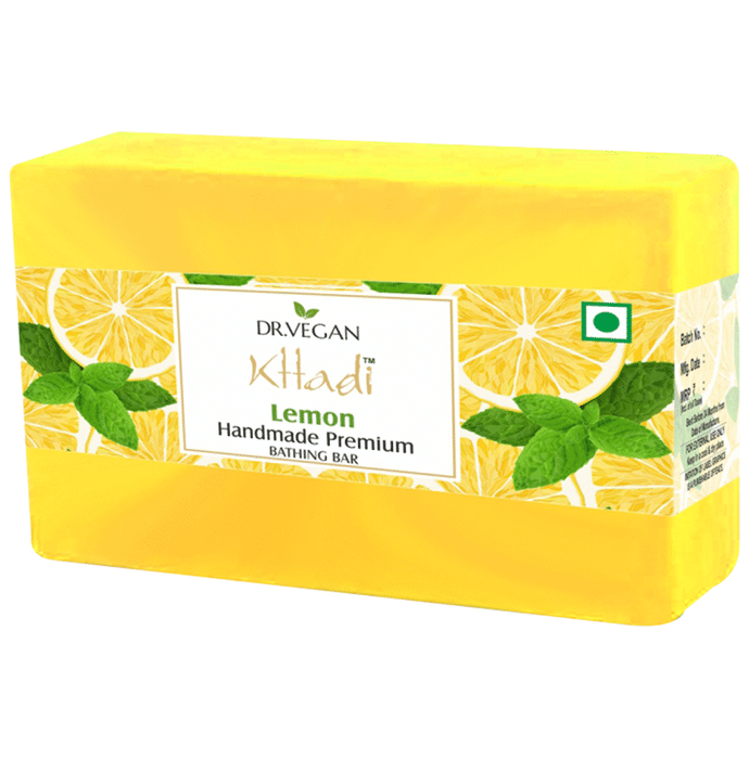 Dr. Vegan Khadi Handmade Premium Bathing Bar is handcrafted and contains premium ingredients from mother earth. Each one is carefully selected for the benefit of the skin, ensuring a rejuvenating experience. | Key Ingredients: Lemon essential oil Glycerine Soap base | Key Benefits: Vegan and cruelty-free Removes germs and grime from your skin Gives you long-lasting fragrance Moisturizes the skin Maintains the oil balance of the skin Leaves your skin soft and calm | Directions For Use: Apply soap on wet body and face, rub to produce lather, then wash off. | Safety Instructions: Read the label carefully before use Store in a cool and dry place, away from sunlight Keep out of reach of the children
