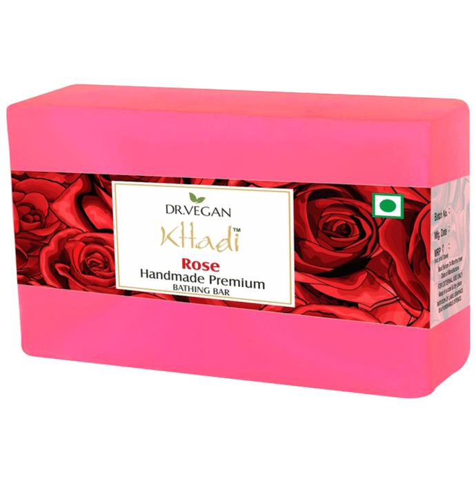 Dr. Vegan Khadi Handmade Premium Bathing Bar is handcrafted and contains premium ingredients from mother earth. Each one is carefully selected for the benefit of the skin, ensuring a rejuvenating experience. This rosewater soap imparts mild antiseptic properties while keeping skin smooth and velvety. | Key Ingredients: Rose essential oil Castor oil Rose water Glycerine | Key Benefits: Vegan and cruelty-free Gentle cleansing soap Moisturizes the skin Antiseptic properties Removes germs and grime from your skin It removes dead cells and refreshes the skin Maintains the oil balance of the skin Leaves your skin soft and calm | Directions For Use: Apply soap on wet body and face, rub to produce lather, then wash off. | Safety Instructions: Read the label carefully before use Store in a cool and dry place, away from sunlight Keep out of reach of the children
