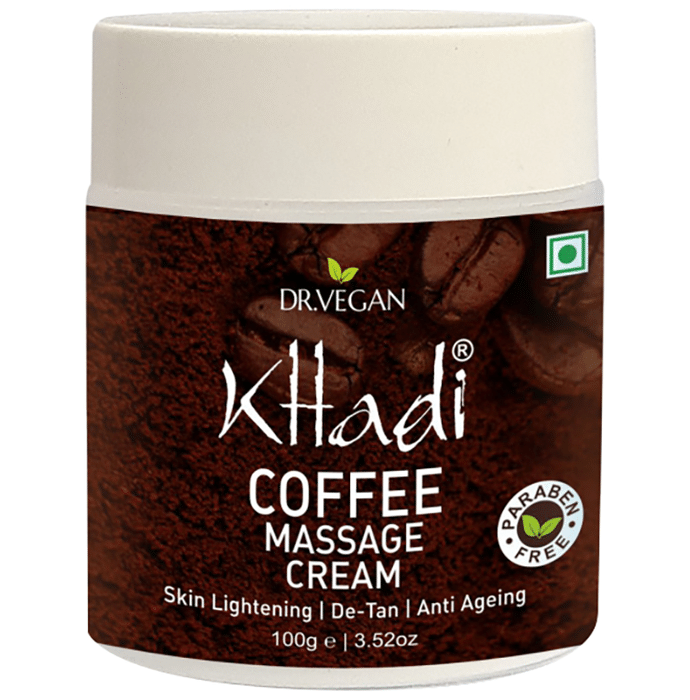 Dr. Vegan Khadi Massage Cream Coffee Dr. Vegan Khadi Massage Cream is a facial massage cream that helps promote healthy skin while relaxing your facial muscles. Coffee is an excellent exfoliator and helps in removing dead cells and in reducing dark circles.
