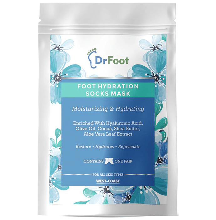 Dr Foot Foot Hydration Socks Mask Dr Foot Foot Hydration Socks Mask Contain hyaluronic acid, olive oil, cocoa, shea butter and aloe vera. It gives a rejuvenating boost along with a lifting and hydrating effect to your dry and rough feet. Dr foot hydration socks mask for dry feet, help reverse the effects of all that damage and restore the skin's natural suppleness. Men and women can both enjoy a total spa experience with these foot hydration socks. Dr foot products are made cruelty free and are dermatologist-tested, safe for all skin type and are non-toxic.