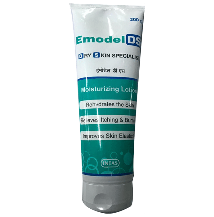 Emodel DS Moisturising Lotion contains Vitamin E, Jojoba Oil, Arachis Hypogaea oil, Silicon Oil, Sunflower Oil, Aloe Leaf Extract as active ingredients. Emodel DS Moisturising Lotion is used as the skin moisturizer, prevents irritation and other skin problems. Key benefits/uses of Emodel DS Moisturising Lotion: - Soothes the skin and is one of the most non-toxic skincare ingredients - Acts as the lubricant on the skin surface give the skin a soft texture and smooth appearance - Prevents the excessive loss of water from the skin surface - Maintains the skin balance - Prevents dryness of skin - Provides long-lasting moisturizing effect Direction for use/Dosage: - Apply uniformly over the exposed skin area - Use daily for the better result Indication: - Dry skin Storage instruction: - Store in a cool, dry place, away from direct heat and sunlight Safety information: - Keep out of the reach and sight of children - Avoid the contact with eyes - In case of contact with eyes, remove with water immediately