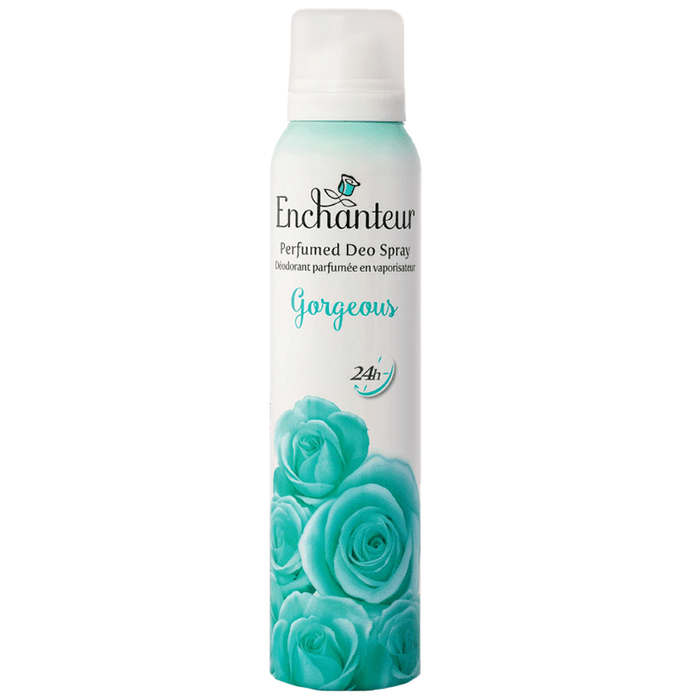 Enchanteur Perfumed Deo Spray Gorgeous Enchanteur Perfumed Deo Spray Gorgeous is an elegant, floral and feminine deodorant spray that has a sensual essence. It is gentle on the skin and offers lasting freshness by fighting body odour. It has the aroma of peaches, tuberoses and jasmine to uplift and refreshes the mood.