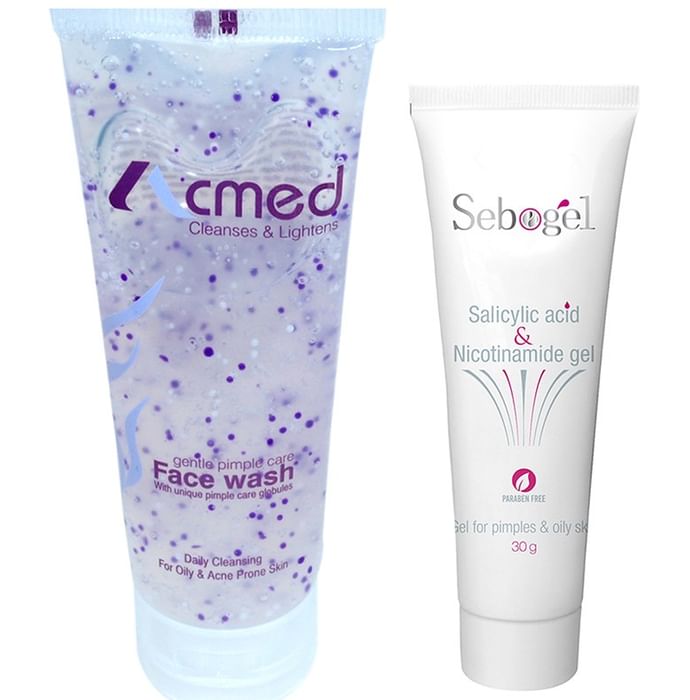 Acmed Gentle Pimple Care Face Wash (Ethicare Remedies) | Acmed Face Wash is used to cure acne which cleanses excess oil, dirt and removes dead skin. It has a breakthrough innovation like pimple care globules that penetrates the skin while the face is washed, ensuring proper delivery of pimple care active ingredients. | Key Ingredients: Tea tree oil Pro-vitamin B5 Vitamin E Aloe Vera | Key Benefits: Tea tree oil: Ensures anti-bacterial action against bacteria common to pimple prone skin Pro-vitamin B5: Provitamin, panthenol when applied to and absorbed by the skin is transformed into vitamin B5 (pantothenic acid), which has natural broad abilities to moisturize, soothe, heal and regenerate the skin Vitamin E: Helps to regulate the production of skin proteins such as collagen and elastin Important for maintaining skin health since it neutralizes free radicals that can damage follicles and increase keratin formation Easily absorbed into the skin It fades away scars and dark spots left by acne by promoting tissue repair Aloe Vera: Antibacterial properties of aloe Vera gel are very effective in treating acne and reducing the redness caused by it Prevents bacteria from infecting acne wounds and accelerates the process of healing | Directions For Use: Take a little Acmed with a little water on to your palm Work up lather and gently massage on your wet face and neck with a circular motion Rinse off with clear water and pat your face dry For best results use twice or thrice a day regularly | Safety Information: Read the label carefully before use Do not exceed the recommended dose Keep out of reach and sight of children Store the formulation in cool and dry place Sebogel (Ethicare Remedies) | Sebogel has a specially prepared formula to get rid of oily and acne-prone skin. Actives in Sebogel help to open the clogged skin pores and also fights against other factors related to acne; as a result, one gets pimple free radiant skin. | Key Ingredients: Salicylic acid Nicotinamide | Key Benefits: Cleanses the acne and opens up closed skin pores Fights against blackheads and skin imperfections Removes dead cells from the surface of the skin Supports the healing of acne lesions Protects from pollutants and irritants Leaves the skin radiant and healthy | Directions For Use: For best results, Sebogel should be applied 2-3 times a day on the affected area regularly. | Safety Information: Read the label carefully before use Store in a cool dry place away from direct sunlight Keep out of reach of the children