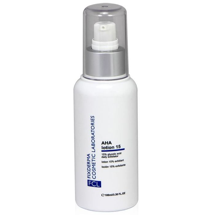 Fixderma Cosmetic Laboratories AHA Lotion 15 Fixderma AHA Lotion 15 is creamy, lightweight leave-on AHA Exfoliant, which is a completely non-abrasive, gentle way to remove dead skin and makes the skin smoother and younger looking. It effectively hydrates the skin and treats hard, clogged bumps on arms and legs.