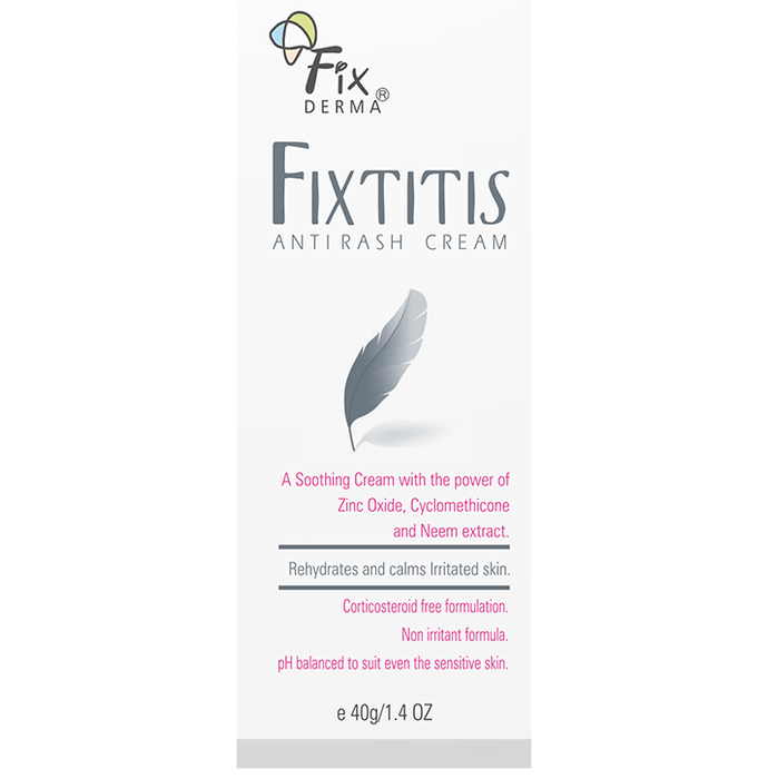 Fixderma Cream helps to restore skin hydration while also calming skin irritation and eliminating itching. It contains Azadirachta indica leaf extract, which helps to soothe sensitive skin and reduce acne breakouts. It also contains Cyclomethicone, which helps to relieve skin irritation while also minimising skin dryness and scarring. | Key Ingredients: Azadirachta indica leaf extract Liquid paraffin Zinc oxide Cyclomethicone | Key Benefits: Fixderma Cream is beneficial for restoring skin hydration and calms skin irritation and helps in reducing itching It contains Azadirachta indica leaf extract which aids in reducing acne breakouts and helps to soothe irritated skin It also contains Cyclomethicone which helps in reducing skin dryness, diminishes the appearance of scars and soothes skin irritation | Directions For Use: Use as directed on the label or as advised by the physician. | Safety Information: Read the label carefully before use Do not exceed the recommended dosage Store in a cool and dry place away from direct sunlight Keep out of reach of children