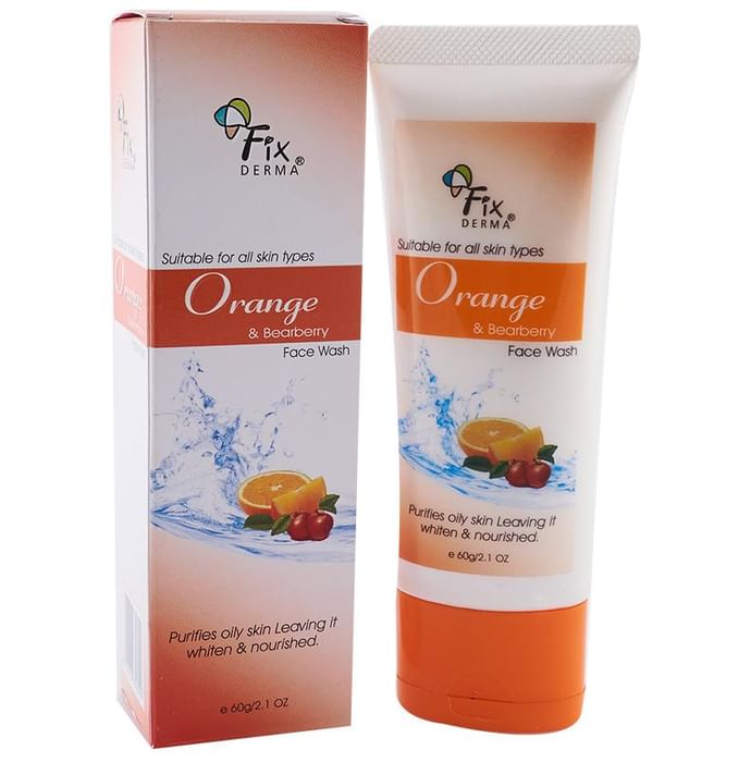 Fixderma Face Wash Orange and Bearberry Fixderma Face Wash Grapefruit and Chamomile purifies the skin gently and makes it soft, nourished, and ageless. Created with the goodness of grapefruit and chamomile, this facewash is efficient in reducing wrinkles and melanin from the skin.
