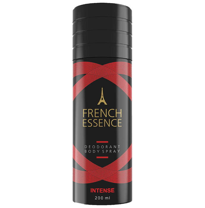 French Essence Intense Deodorant Body Spray (200ml Each) French Essence Intense Deodorant Body Spray is the ideal everyday fragrance to intensify your spark. It is formulated with extracts of saffron, oakmoss, coriander, sandalwood, and cedarwood, giving it a rich, woody, and musky scent.