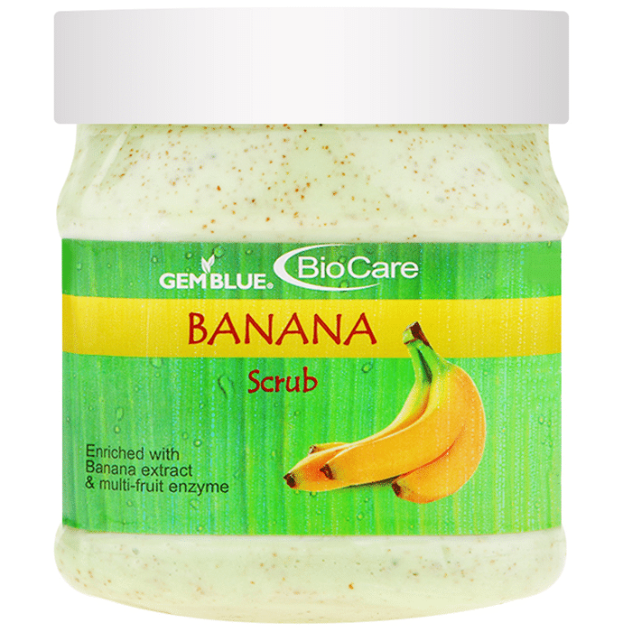 Gemblue Biocare Banana Scrub Gemblue Biocare Banana Scrub is a new formulation for thoroughly washing and purifying facIal skin. It removes pollutants from the skin pores, sloughs off dead skin, and thoroughly cleanses the skin. It hydrates, nourishes, and rejuvenates the skin. Pampering your skin with a calming peel-off mask is the most straightforward approach to restoring your natural complexion and smooth, wrinkle-free skin.