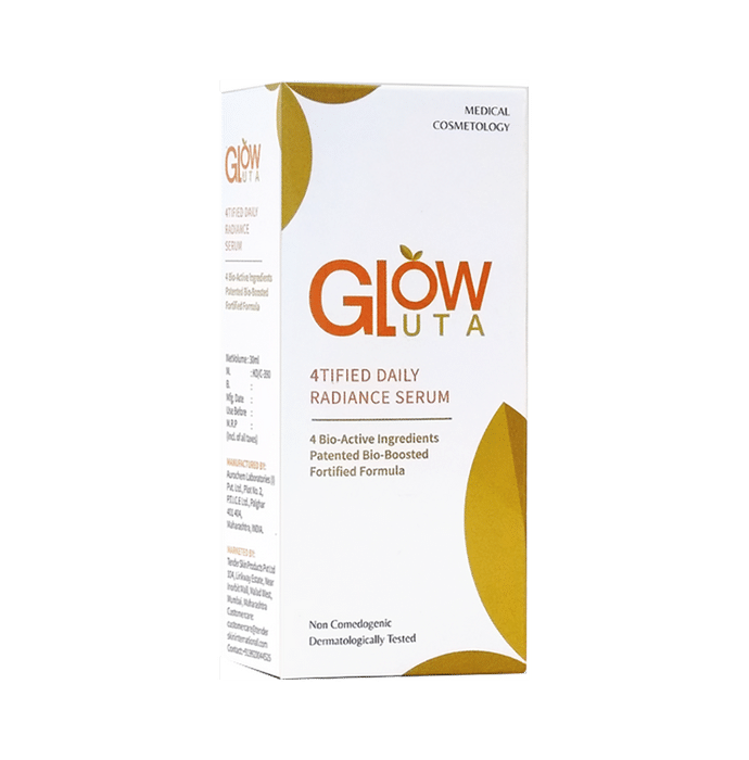 Glow Gluta 4Tified Daily Radiance Serum (30ml Each) Glow Gluta 4Tified Daily Radiance Serum concentrates in reducing pigmentation and uneven skin tone. A very lightweight serum that absorbs quickly into the skin. 4 BioActive advanced skin lightening agents help in lightening melasma, acne induced hyperpigmentation, marks, uneven skin tone and a dull complexion, giving you velvety soft, spotless and glowing skin.