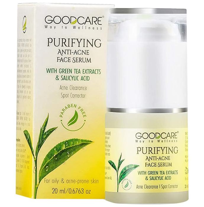 Goodcare Purifying Anti-Acne Face Serum Goodcare Face Serum rejuvenates the skin and helps in hydrating the face effectively reducing the dark spots over time. The combined goodness of Green Tea Extracts and other ingredients visibly reduces hyper-pigmentation giving a velvety smooth touch to deliver you a flawless skin. It is available in variants :-Youthlift Anti-Ageing, Spot Anti- Pigmentation, Miracle Skin Lightening, Purifying Anti-Acne.