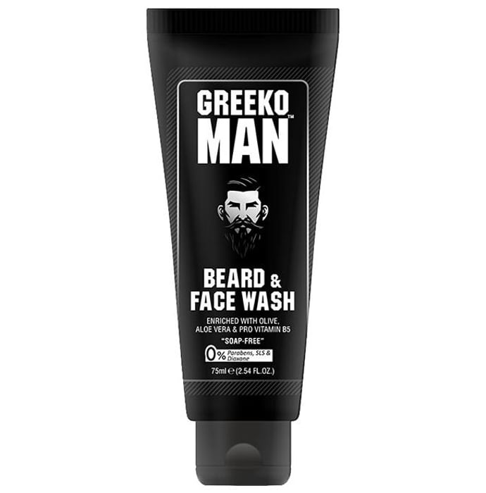 Greeko Man Beard & Face Wash Greeko Man Beard & Face Wash is a gentle beard and face wash that helps to cleanse and refresh the skin and beard. It gives a fresh look and feel to the beard, hydrates the skin and makes it soft and smooth.