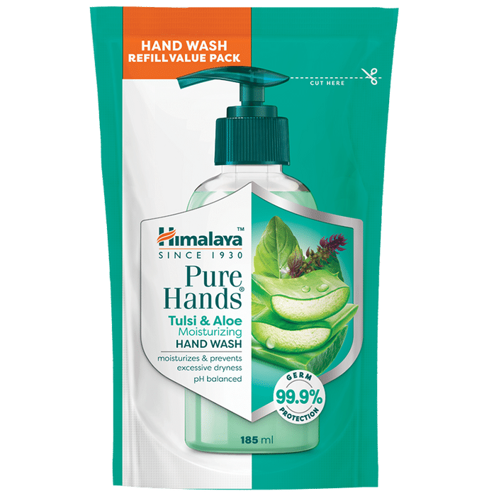 Himalaya Personal Care Tulsi & Aloe Moisturizing Pure Hands Hand Wash Refill Pack Himalaya Pure Hands Hand Wash Refill Pack is designed to moisturize and prevent excessive dryness of the hands. It contains ingredients which provide detoxifying, purifying and antimicrobial properties. It helps to kill 99.9% germs keeping the hands pure and safe. In addition to this, it comes in three different variants namely, Tulsi & Aloe Moisturizing, Tulsi Purifying, and Tulsi & Lemon Deep Cleansing.