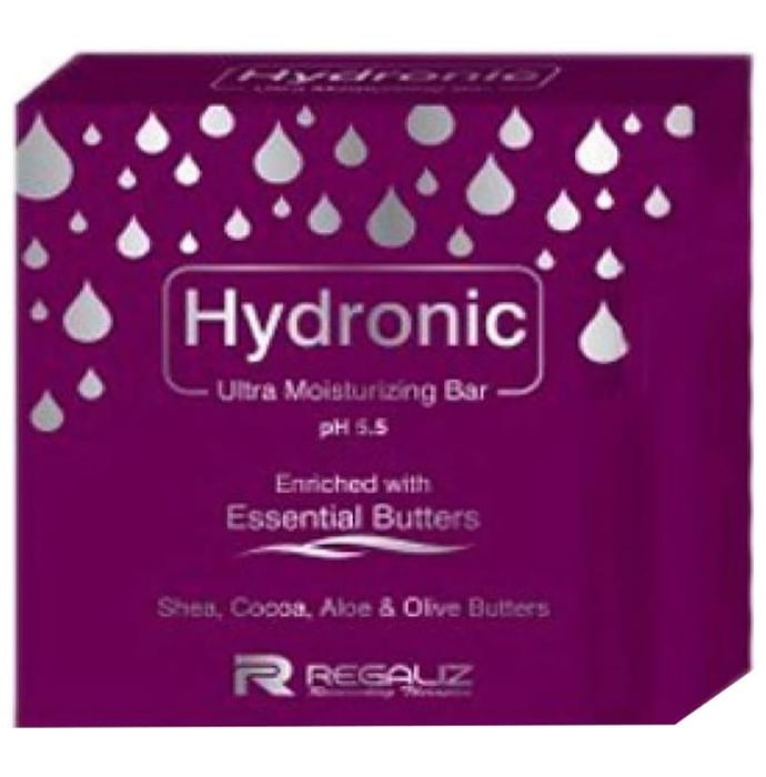 Hydronic Ultra Moisturizing Bar is enriched with essential butter. It contains the goodness of shea, cocoa, aloe and olive butter. It can cleanse the skin and improve the texture of the skin | Key Ingredients: Shea Cocoa Aloe vera Olive butter | Key Benefits: It cleanses the skin and helps improve skin texture It contains the goodness of shea, cocoa, aloe and olive butter | Directions For Use: Use as mentioned on the label or directed by the physician | Safety Information: Store in a cool and dry place away from direct sunlight Read the label carefully Keep out of reach of children