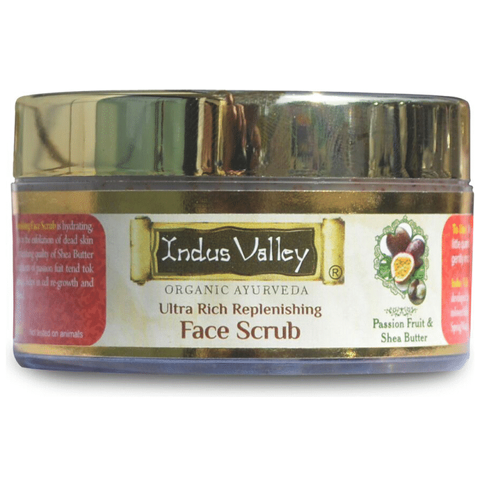 Key Ingredients of Indus Valley Organic Ayurveda Ultra Rich Replenishing Face Scrub: Shea butter Passion fruit Jojoba oil Sweet almond oil Wheat germ oil | Key Benefits of Indus Valley Organic Ayurveda Ultra Rich Replenishing Face Scrub: Infused with the goodness of naturally nourishing ingredients such as Shea butter, passion fruit, jojoba oil, sweet almond oil, and wheat germ oil With the regular use of this fruit-based scrub you will be able to achieve a flawless, healthy and glowing skin Made using natural ingredients, it helps clean the skin by removing dead skin and excessive oil from the skin while helping to combat acne It also helps protect skin from environmental pollutants and dirt Natural oils help in reducing chapped skin and dryness These oils make skin soft by providing deep nourishment