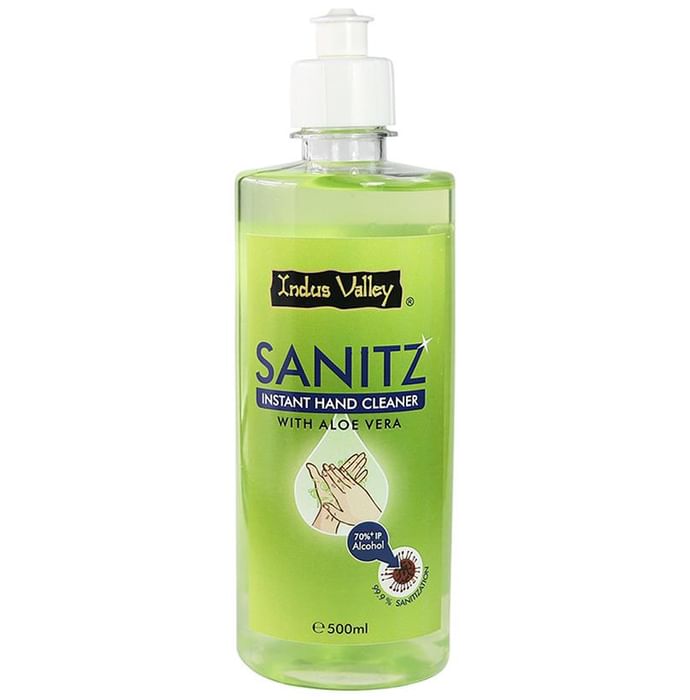 Indus Valley Sanitz Instant Hand Cleaner Sanitizer is a rinse free cleaner which remove 99.9% of germs. This hand cleaner is enriched with ingredients which possess skin moisturizing properties. It is easy to use and suitable for all type of skin. | Key Ingredients: | with Orange Oil: Isopropyl alcohol, Aloe Vera juice, Reetha extract, Neem extract, Carbomer, Orange oil. | with Aqua Freshness: Isopropyl alcohol, Aloe Vera juice, Reetha extract, Neem extract, Carbomer, Fragrance. | with Blueberry Juice: Isopropyl alcohol, Blueberry fruit juice, Aloe vera juice, Reetha extract, Neem extract, Carbomer & Fragrance. | with Rose Water: Isopropyl alcohol, Rose water, Reetha extract, Neem extract, Carbomer & Fragrance. | with Aloevera: Isopropyl alcohol, Aloe Vera juice, Rose water, Reetha extract, Neem extract, Carbomer & Fragrance | Key Benefits: It is an effective 70% alcohol content-based sanitizer Facilitates 99.9 percent germ protection It moisturises hand and offers total hand hygiene No wash is required and gives quick drying | Directions For Use: Take few drops of sanitizer on hand and rub to cover all surface. It will dry its own. | Safety Information: For external use only Read the label carefully before use Store in a cool dry place away from direct sunlight Keep out of reach of the children