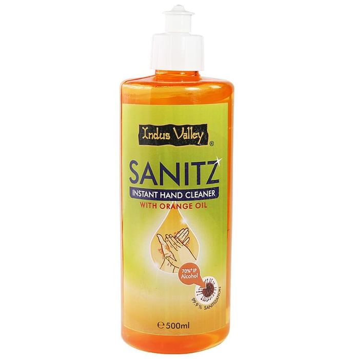 Indus Valley Sanitz Instant Hand Cleaner Sanitizer is a rinse free cleaner which remove 99.9% of germs. This hand cleaner is enriched with ingredients which possess skin moisturizing properties. It is easy to use and suitable for all type of skin. | Key Ingredients: | with Orange Oil: Isopropyl alcohol, Aloe Vera juice, Reetha extract, Neem extract, Carbomer, Orange oil. | with Aqua Freshness: Isopropyl alcohol, Aloe Vera juice, Reetha extract, Neem extract, Carbomer, Fragrance. | with Blueberry Juice: Isopropyl alcohol, Blueberry fruit juice, Aloe vera juice, Reetha extract, Neem extract, Carbomer & Fragrance. | with Rose Water: Isopropyl alcohol, Rose water, Reetha extract, Neem extract, Carbomer & Fragrance. | with Aloevera: Isopropyl alcohol, Aloe Vera juice, Rose water, Reetha extract, Neem extract, Carbomer & Fragrance | Key Benefits: It is an effective 70% alcohol content-based sanitizer Facilitates 99.9 percent germ protection It moisturises hand and offers total hand hygiene No wash is required and gives quick drying | Directions For Use: Take few drops of sanitizer on hand and rub to cover all surface. It will dry its own. | Safety Information: For external use only Read the label carefully before use Store in a cool dry place away from direct sunlight Keep out of reach of the children