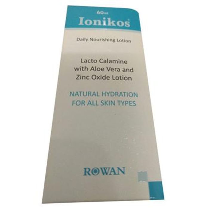 Ionikos Lotion Ionikos Lotion contains Calamine, Aloe vera, Zinc oxide, Glycerine, Light liquid paraffin and Simethicone. It is a daily nourishing lotion, moisturizer with emollient properties. It is extremely soothing, natural astringent and most effective renewing agent with natural pH. Calamine is an antiseptic and antipruritic agent which prevents and treats itching. Aloe vera is an extremely good moisturiser that prevents dryness due to itching. It provides natural hydration for all skin types. Ionikos also serves as a mild sunscreen due to presence of physical sunscreen zinc oxide. Zinc oxide also reduces spots on skin. Glycerine improves skin texture and makes it smooth and soft. Simethicone provides lubrication for uniform and bubble-free application. Directions of use:- Apply Ionikos in appropriate quantity on body for anti-pruritic and soothing effects. Use under medical supervision.