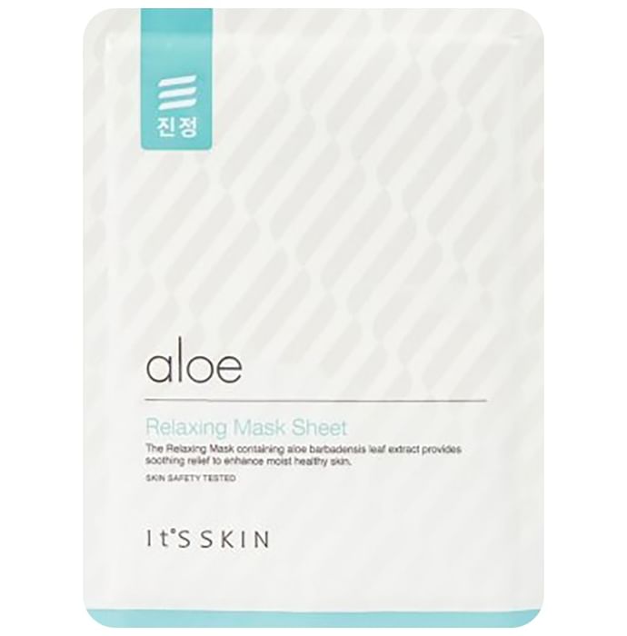 It's Skin Aloe Relaxing Mask Sheet (20gm Each) It's Skin Aloe Relaxing Mask Sheet (20gm Each) helps keep the skin moisturised and soothing inflamed skin. Cucumber extract calms the skin, lowers redness, and aids in the recovery of sunburns and itching. It also contains Trehalose, which is high in antioxidants and helps to decrease skin cell premature ageing and fine wrinkles.
