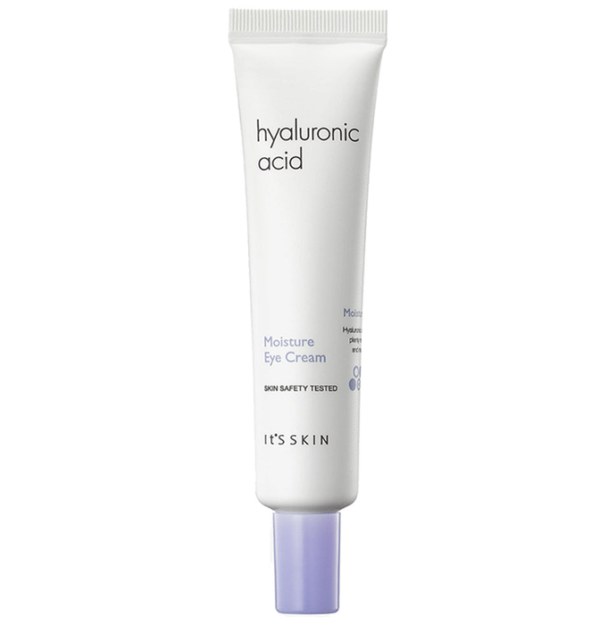 It's Skin Hyaluronic Acid Moisture Eye Cream It's Skin Hyaluronic Acid Moisture Eye Cream helps to calm and soothe inflammation beneath the eyes. It contains Hyaluronic acid, which moisturises the skin, protects the sensitive undereye area, and boosts collagen synthesis. Blueberry is also included, which helps the skin fight inflammation caused by acne, psoriasis, eczema, and premature ageing.