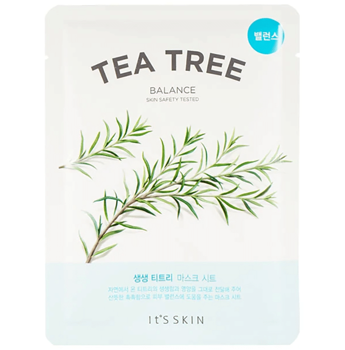 It's Skin Tea Tree Face Mask Sheet (20gm Each) helps to prevent the skin from redness and inflammation. Tea tree oil includes anti-inflammatory qualities that help to soothe and relieve itchy, inflamed skin, as well as edoema and redness. It also contains Licorice root extract, which helps with hyperpigmentation reversal, UV protection, and scar healing. | Key Ingredients: Tea tree oil Coptis Japonica root extract Licorice root extract Schizandra chinensis fruit extract Ginger root extract | Key Benefits: It's Skin Tea Tree Face Mask Sheet is beneficial for protecting the skin against redness and inflammation It contains Tea tree oil which has inflammatory properties that aid to soothe and alleviate itchy, inflamed skin and may also assist with edoema and redness It also contains Licorice root extract which aids in the reversal of hyperpigmentation, promotes sun protection, and heals scars | Directions For Use: Use as directed on the label or as advised by the physician. | Safety Information: Read the label carefully before use Do not exceed the recommended dosage Store in a cool and dry place away from direct sunlight Keep out of reach of children