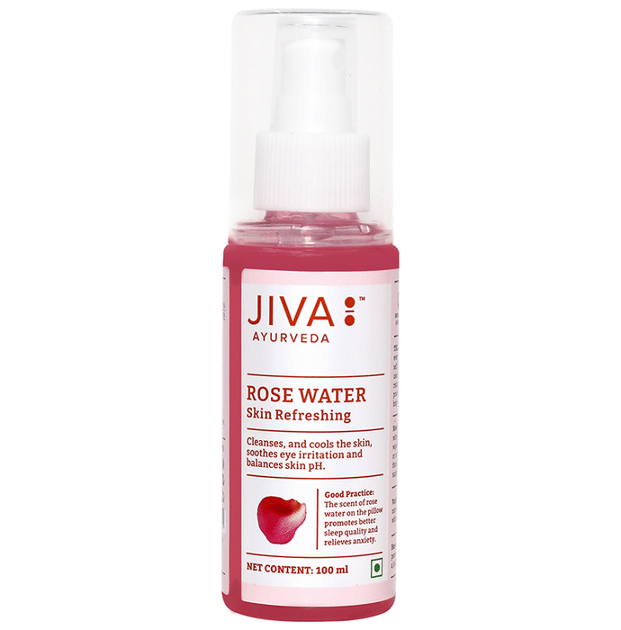 Jiva Ayurveda Rose Water is cooling and astringent in nature. It cools, freshens, and tones the skin. Sandal is cooling in nature and deeply cleanses toxins from the pores. It removes dirt and oils from the deep pores of the skin. | Key Ingredients : Rose petals Sandal | Key Benefits : It removes dirt and oil from the deep pores of the skin Helps in rejuvenating dull and tired skin Aids in tightening pores and balances natural pH level of the skin Useful in fighting acne | Directions For Use: Wash face with lukewarm water and dry with towel. Apply the rose water all over the face as well as neck and rub gently. Gently massage in upward direction. | Safety Information: Read the label carefully before use Store in a cool dry place away from direct sunlight Keep out of reach of the children