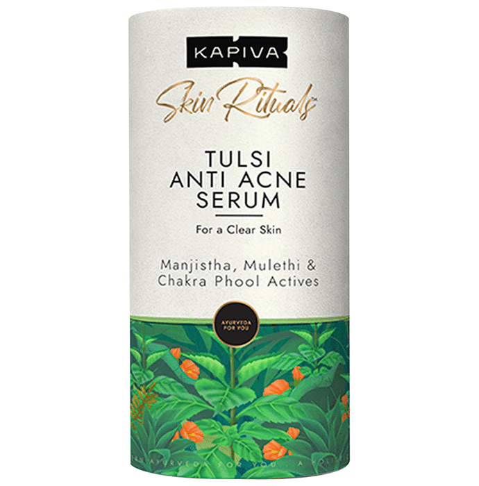 Kapiva Tulsi Anti Acne Serum Kapiva Tulsi Anti Acne Serum is formulated with extracts that help to control acne formation and gives you a bright look. Tulsi, an active ingredient of the serum, has anti-bacterial properties that shield the skin from acne-causing germs and reduce cell clumping. It also contains manjistha and mulethi, which aid in controlling oil production and shielding the skin from breakouts. This anti-acne serum is 100% made, safe and allergy-certified, ayurvedic, and all-natural, with no toxins, parabens, or sulphates.