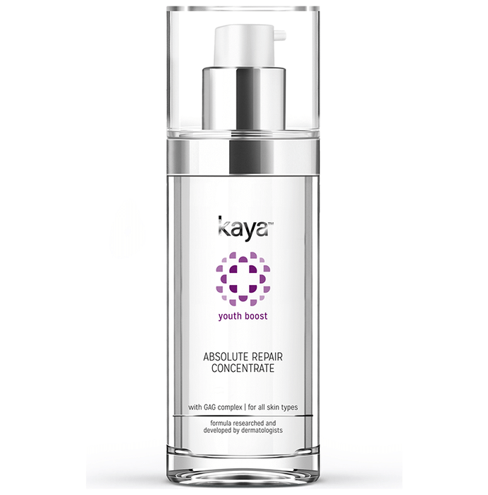 Kaya Absolute Repair Concentrate Kaya Absolute Repair Concentrate is a non-oily formulation containing Glycosaminoglycan's gag complex, which penetrates deep into the skin and prevents collagen break down. It moisturizes, protects, and stimulates cell renewal as well as turnover, resulting in firmer skin. It also reduces the appearance of fine lines.
