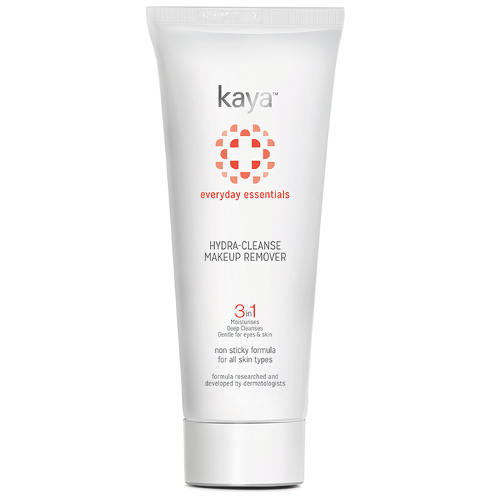 Kaya Hydra Cleanse Makeup Remover Kaya Hydra Cleanse Makeup Remover nourishes the skin, keeping it soft, smooth and healthy. Hydra-Cleanse Makeup Remover is designed to effectively remove regular, water-proof, and long-lasting makeup without the use of water. This 3-in-1 alcohol-free formula is gentle on skin, lips, and eyes. It retains the moisture and natural pH of the skin. Cucumber and with Hazel extracts reduce pore size to normal and instantly soothe the skin.