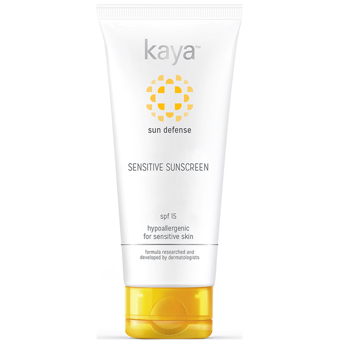 Kaya Sensitive Sunscreen SPF 15 Kaya Sensitive Sunscreen SPF 15 is a perfume-free sunscreen that is specially formulated for sensitive skin. It protects the skin from harmful UVA-UVB rays and prevents sunburn as well as skin ageing due to sun exposure. This lightweight formula hydrates the skin and spreads easily giving a matte finish.