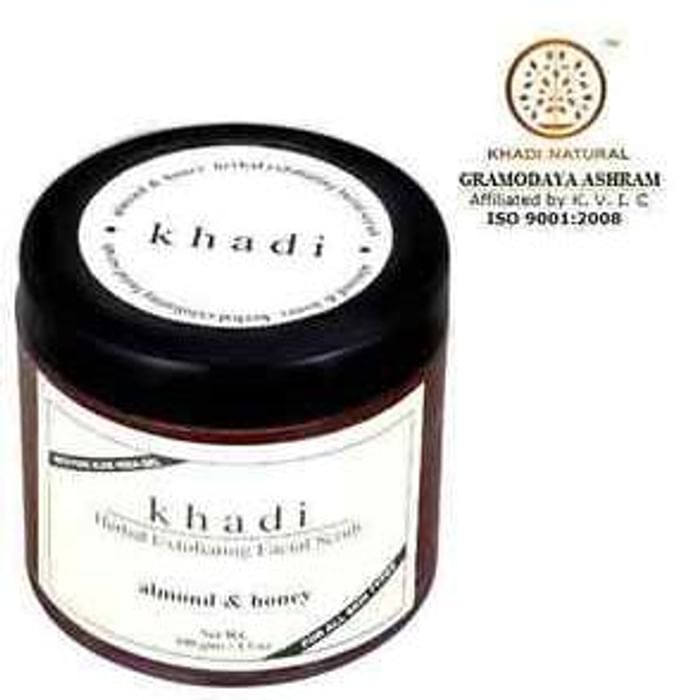 Khadi Naturals Herbal Exfolalmond & Honey Facial Scrub Khadi Natural Almond and Honey Exfoliating Facial Scrub contains the goodness of nature to revive your skin and free it from dead cells. Honey is a strong moisturising agent that also works as an antibacterial compound. It also uses almond oil to exfoliate the skin and keep bacteria from developing quickly. Khadi Natural Almond and Honey Exfoliating Facial Scrub works as a compound that removes dead skin cells and polishes the skin. The honey and almond facial scrub is suitable for all skin types. Directions for use: 1. Wet your face and neck. 2. Apply Herbal facial scrub on your face. 3. Work the scrub in an anti-clock direction. 4. Clean with cotton pads. 5. Rinse your face and pat dry. Use under medical supervision.