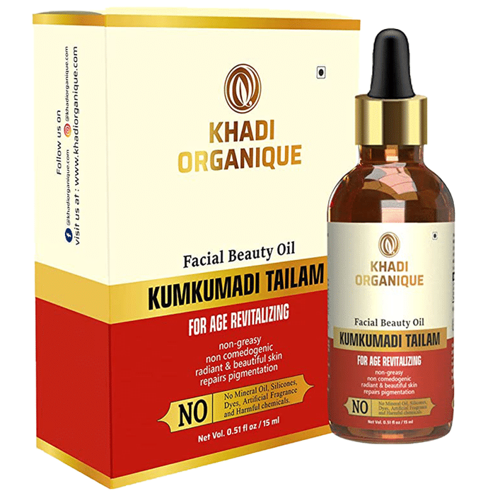 Khadi Organique Kumkumadi Tailam Face Beauty Oil Khadi Organique Kumkumadi Tailam Face Beauty Oil has the most valuable benefits: getting rid of skin discolouration, treating blemishes and acne scars, brightening dull skin, revealing smoother, younger-looking skin complexion and making skin soft, smooth, and bright.