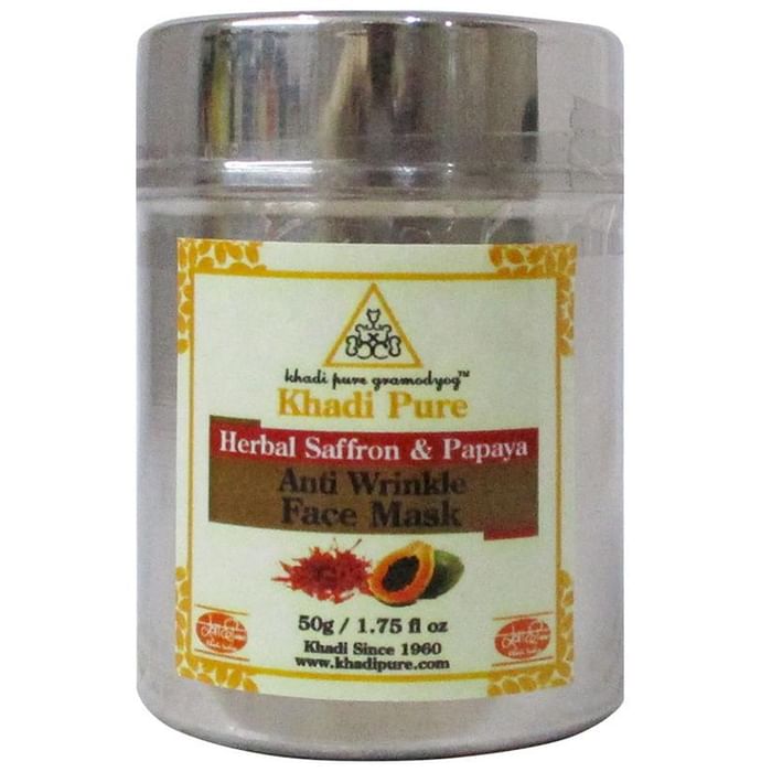 Khadi Pure Herbal Saffron & Papaya Anti Wrinkle Face Pack Khadi Pure Herbal Saffron & Papaya Anti Wrinkle Face Pack works as an amazing exfoliator that helps remove dead skin and effortlessly removes blackheads while keeping the skin soft and nourished. Papaya also keeps your skin safe from harmful sun rays and helps remove suntan.