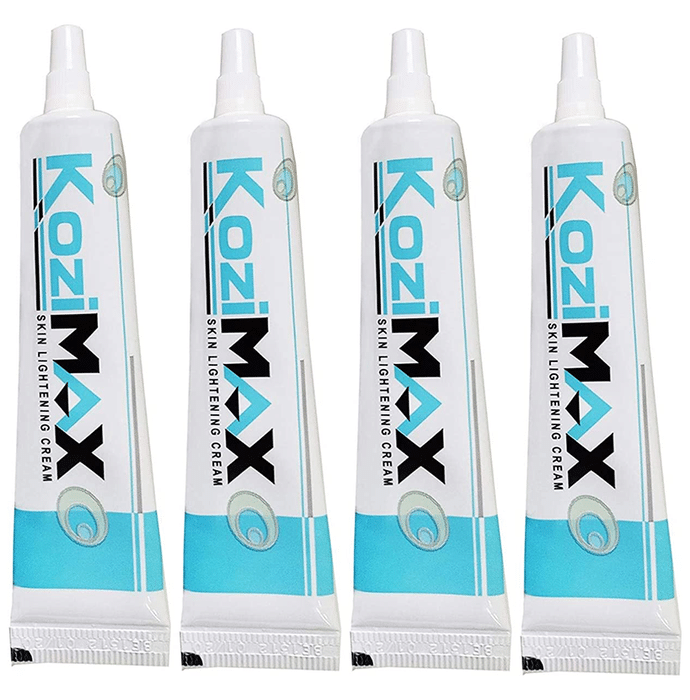 Kozimax Skin Lightening Cream (15gm Each) Kozimax Skin Lightening Cream has been specifically designed to brighten skin tone. This face lotion helps to balance out skin tone and brighten the complexion. The lotion, which contains vitamin C, kojic acid and glabridin, aids in the healing of skin conditions such as hyperpigmentation and sunburns. It can also assist with acne scars, birthmarks, and melasma. Kozimax cream can also be used to lighten dark elbows, knees, and underarms over time.