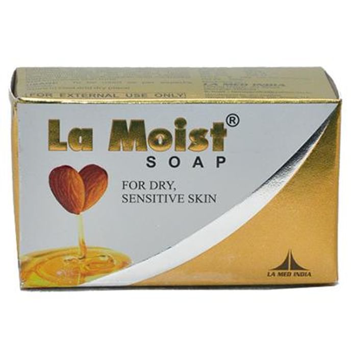 LA Moist Soap deeply moisturizes and softens skin. Enriched with almond oil that gives softness to your skin by removing dark spots and blemishes and improves complexion. Also contains a blend of honey and Aloe Vera that deeply moisturizes and nourishes your skin making it glow. | Key Ingredients: Pure Almond Oil Sodium Palm Kernalate Di sodium EDTA Titanium Dioxide | Key Benefits: This soap is a scientifically chosen mix of herbal ingredients, to keep your skin soft, supple and hydrated Almond has emollient property that helps the skin absorb water, while humectant honey helps skin retain the hydration The skin will be well-moisturized, and glowing | Directions For Use: Gently work up a foamy lather, and rinse. | Safety Information: Read the label carefully before use Keep out of the reach of children Should be protected from direct light Avoid the contact with eyes In case of contact with eyes, remove with water immediately