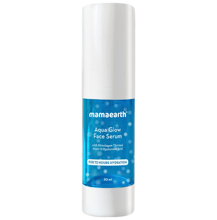 Mamaearth Aqua Glow Face Serum Mamaearth Aqua Glow Face Serum is formulated for providing moisture to the skin. Himalayan thermal water, which is high in skin-conditioning minerals, aids in the softening and suppleness of the skin. Hyaluronic acid is the gold standard component for keeping your skin moisturised and hydrated, as it can store 1000 times its weight in water. It aids in the repair of the skin's moisture barrier, binds water to the skin cells, and keeps the skin appearing fresh for an extended period of time. The serum, which is packed with these potent substances, penetrates deep into the skin and seals in moisture for 72 hours, helping to improve skin cell production and elasticity.
