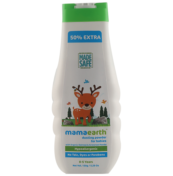 Mamaearth Dusting Powder for Babies Mamaearth Dusting Powder for Babies is a dermatologically tested 100% natural, no lung-clogging, talc-free body dusting powder. It contain organic and natural ingredients that help babies skin to retain moisture while treating and preventing diaper rash. All ingredients used are gentle, free of toxicity and irritants and are totally safe for baby’s sensitive skin.