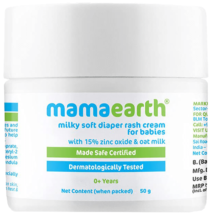 Mamaearth Milky Soft Diaper Rash Cream for Babies Mamaearth Milky Soft Diaper Rash Cream for Babies is a dermatologically tested rash-prevention cream for babies. It contains oat milk, calendula and zinc oxide which maintains moisture content in the skin, helps soothe rashes, itching, reduces redness and forms a protective layer on the skin. This product is made specially for the gentle and sensitive skin of babies. It does not contain any parabens, sulphates or any other toxin that can harm the baby's skin.