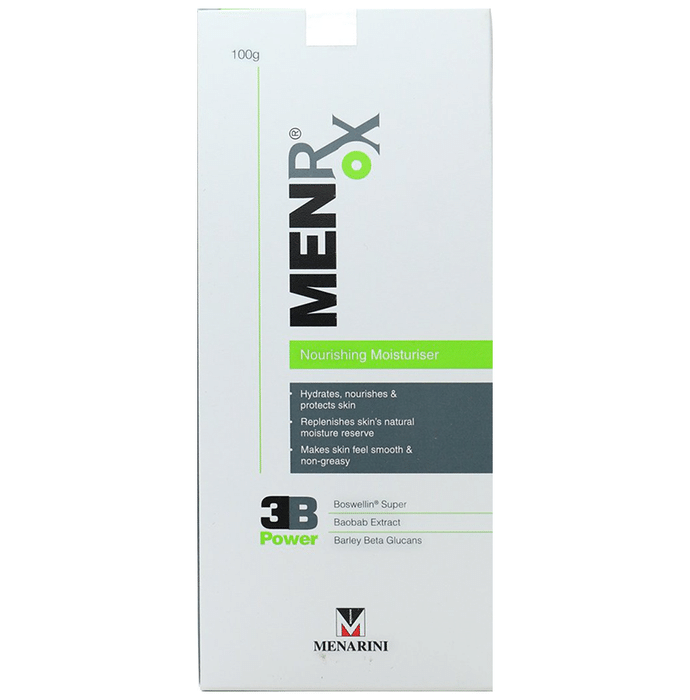 Menrox Nourishing Moisturiser is a nourishing nutrient formula helps retain moisture, replenish skin's natural moisture reserves, reduces Trans Epidermal Water Loss by improving skin barrier function. | Key Ingredients: Boswellin Baobab extract Barley beta glucans | Key Benefits: It has anti-bacterial, anti-inflammatory, and astringent, it has scar reducing property and it stimulates cell growth Buttery textured cream glides over your skin effortlessly and quickly gets absorbed Has wonderful fragrance which stays for long time it protects skin from harmful UV rays It effectively repairs your dull and damaged skin With regular use you will notice an even skin tone | Directions For Use: Apply Menrox Nourishing Moisturiser directly to the skin. | Safety Information: Keep out of the reach of children Should be protected from direct light Avoid the contact with eyes In case of contact with eyes, remove with water immediately
