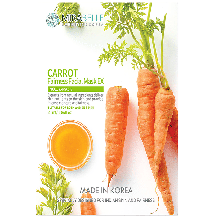 Mirabelle Cosmetics Korea Carrot Fairness Facial Mask Ex Mirabelle Cosmetics Korea Gold+Charcoal Dual System Facial Sheet Mask is a blend of unique ingredients that can help in repairing aged skin and restoring a youthful appearance. It is easy to use and provides great benefits to the skin. It can also help in removing excess oil from the skin and reduce acne breakout.