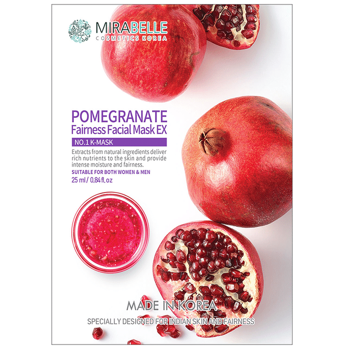 Mirabelle Cosmetics Korea Pomegranate Fairness Facial Mask EX Mirabelle Cosmetics Korea Pomegranate Fairness Facial Sheet Mask is a blend of unique ingredients that can help in repairing aged skin and restoring a youthful appearance. It is easy to use and provides great benefits to the skin. Enriched with the goodness of pomegrantes, it nourishes and revitalises the skin.