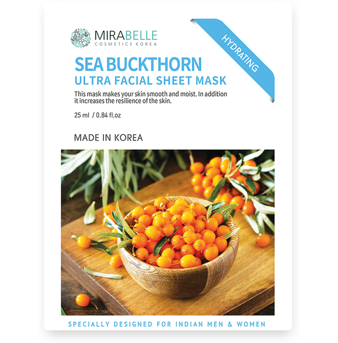 Mirabelle Cosmetics Korea Sea Buckthorn Ultra Facial Sheet Mask Mirabelle Cosmetics Korea Sea Buckthorn Facial Sheet Mask is a blend of unique ingredients that can help in balancing the pH of the Skin. It is easy to use and provides great benefits to the skin. It can also help in removing excess oil from the skin and reduce acne breakout.