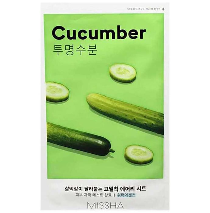 Missha Airy Fit Sheet Mask (20gm Each) Cucumber Missha Airy Fit Sheet Mask (20gm Each) is a water-based sheet mask containing natural extracts extract with high moisture content for dry skin as it helps to provide clean and moist skin. It gives a cooling, soothing, and refreshing feel to the skin. The mask adheres to the skin nicely and adds moisture back into the skin.