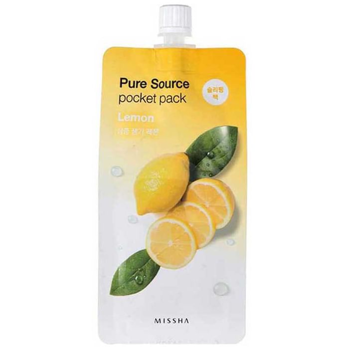Missha Pure Source Pocket Pack (20gm Each) Lemon Missha Pure Source Pocket Pack (20gm Each) Lemon benefits the skin by restoring radiance and improving skin tone. It contains lemon extract, which helps to reduce dark spots, lighten skin tone, and regulate oil production on the face. It also reduces oxidative stress, fights free radicals, and boosts collagen production in the body.