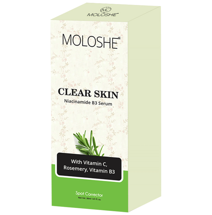 Moloshe Clear Skin Niacinamide B3 Serum Moloshe Clear Skin Niacinamide B3 Serum This serum can help reduce acne marks and dark spots, resulting in an even complexion or tone. This water-soluble vitamin works with the natural substances on your skin that can help improve uneven skin tone, fine lines, wrinkles, dullness, and a weakened surface. Aloe vera, a natural antioxidant, which acts as an anti-inflammatory and healing agent which can help manage multiple skin conditions. This face wash is made from 100% natural ingredients and is sulfate-free, cruelty-free and paraben-free.