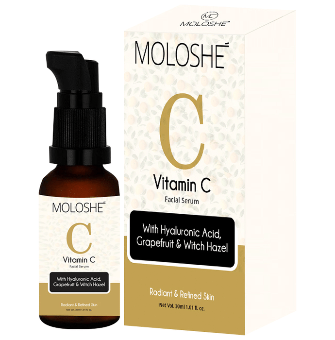 Moloshe Vitamin C Facial Serum Moloshe Vitamin C Facial Serum comes with the goodness of ginger, green tea and witch hazel extract that can help firm your skin and prevent acne. This serum works as a natural antioxidant that can help keep your skin hydrated for longer. Vitamin C can help brighten and even out the skin tone. It can help achieve a healthy glow, and it is an entirely vegan product. This product is paraben sulphate and cruelty-free