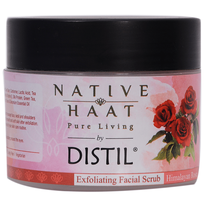 Native Haat Distil Exfoliating Facial Scrub Himalyan Rose Native Haat Distil Facial Scrub is designed to provide nourishment and moisturization to the skin. The ingredients present in the product are helpful in maintaining the natural pH balance of the skin. In addition to this, it comes in three different variants namely, Himalyan Rose, Indian Sandalwood, and Wild Jasmine.
